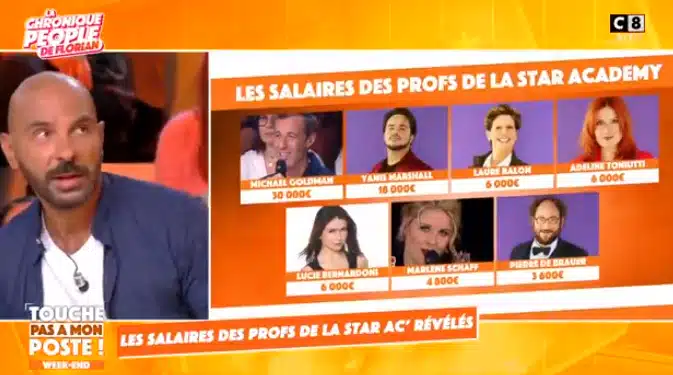 Nous sommes arrivés au terme de cette semaine et donc à la dernière diffusion de Touche Pas à Mon Poste de celle-ci. Et comme invité du jour, nous avons reçu Florian Anselme, célèbre chroniqueur qui nous briefé sur un détail qui a surement déjà résonné dans l’esprit de tout un chacun : le salaire des professeurs de la Star Academy !